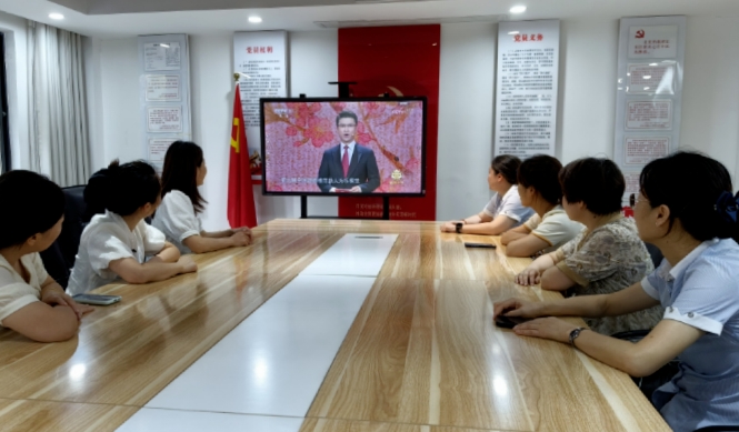 岳塘区宝塔街道云峰社区组织工作人员集中收看。