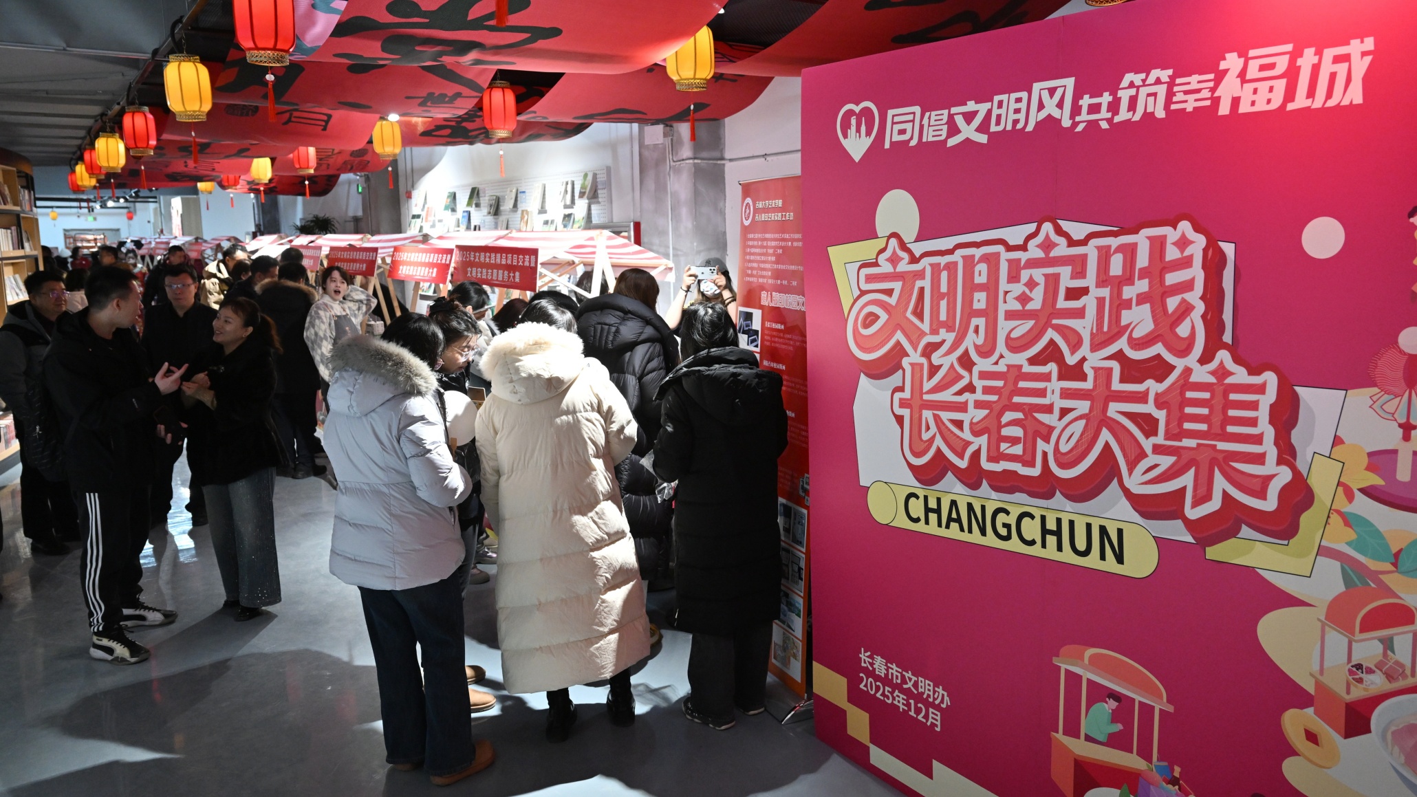 2025年12月30日,“2025年文明实践精品项目交流暨文明实践志愿服务大集”活动在吉林省长春市“‘这有书’文化空间”盛大启幕。本次活动由中共吉林省委宣传部主办,以深化拓展新时代文明实践中心建设为核心,通过精品项目展示、经验交流、便民服务“三位一体”的形式,让文明实践融入日常、贴近群众,现场人头攒动、互动热烈,一派热闹非凡的景象。