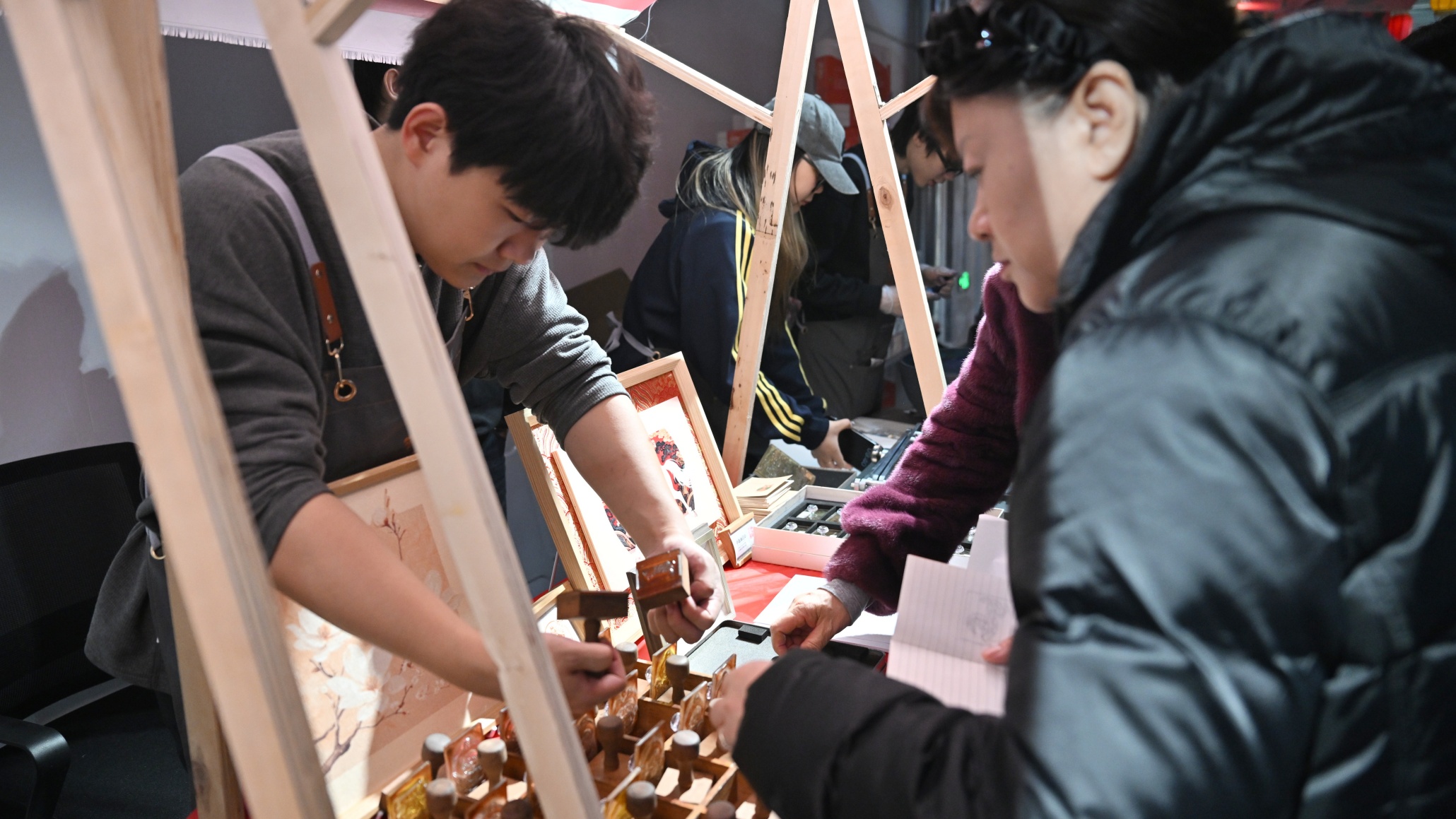 与此同时,志愿服务大集的各类摊位前更是人气爆棚:糖画艺人手持铁勺、以糖为墨,在案板上勾勒出栩栩如生的花鸟鱼虫,引得孩子们驻足围观;中医义诊摊位前,医师耐心为市民把脉问诊、答疑解惑;丝线编制的精美饰品、挂件琳琅满目,尽显传统手工艺的魅力;吉林大学艺术学院带来的版画体验、漆扇晕染项目排起长队,市民亲手感受非遗文化的独特韵味;蓝天救援队的应急救护培训区更是引人关注,专业演示让大家直呼“实用”!