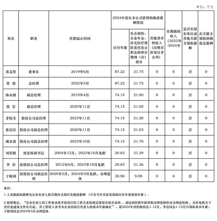 按照党中央、国务院关于中央企业负责人薪酬制度改革的意见规定,现将本企业2024年负责人薪酬信息披露如下: