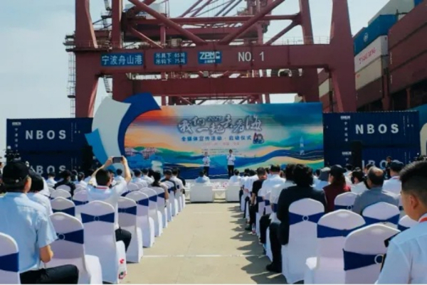 2025年“我们一起去看海”全媒体宣传活动在浙江宁波舟山港梅东集装箱码头正式启动。荣毅 摄