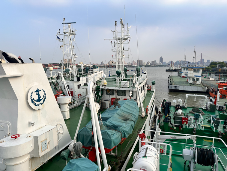 用于海图测绘的海巡船靠泊在黄浦江中。荣毅 摄