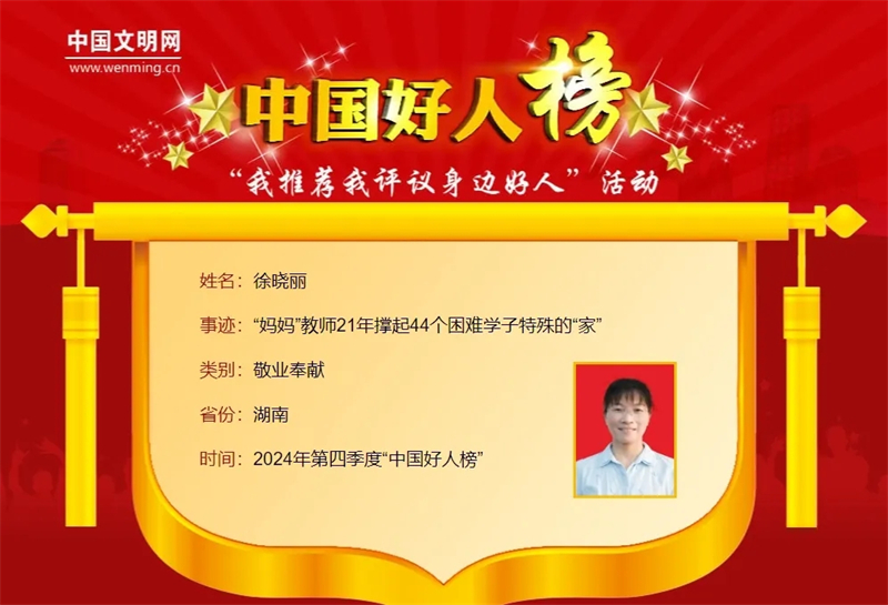 小游的故事同样感人。他的父母常年在外打工,家人将他转到离家一百多里路的鸭子港中学。小游平时住在寝室,每到双休日或假期,徐晓丽就把他接到家里辅导学习。徐晓丽的家成了小游的另一个温暖港湾。在这里,他不仅得到了学习上的帮助,更感受到了家的温暖。徐晓丽为他洗衣、做饭,关心他的生活点滴。在她的精心照顾下,小游以优异的成绩考入高中,如今已研究生毕业,开启了自己的事业征程。