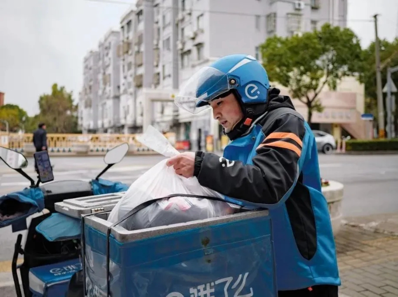 正在送货途中的苟诗意。图片来源:上海市文明办