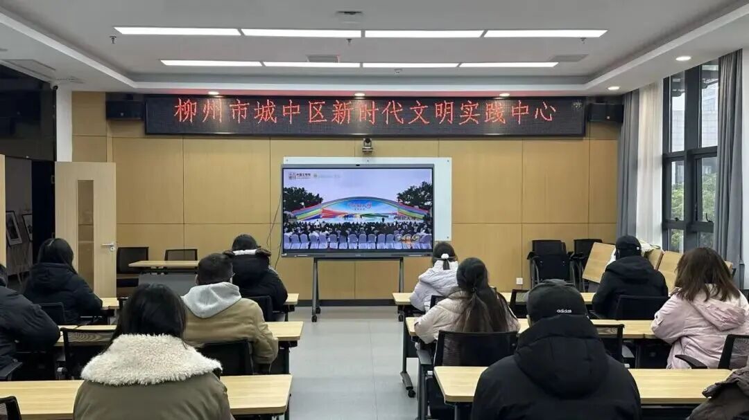 鱼峰区天马街道干部职工观看“中国好人榜”发布仪式。