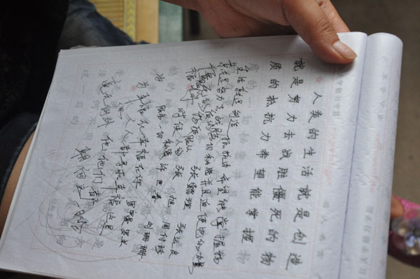 “英雄”从未远离 “英雄”就在身边 最美乡村医生钟晶说,生命对于每个人都只有一次,每一个英雄后面都是一个真真实实的家庭、双亲、爱人和儿女。没有天生的英雄,每一个凡人,只要从围观中向前跨一步,成就的都是壮举。 中国艺术家交流协会名誉主席林岳芳动情地表示,我们这个民族,英雄从未消失过!英雄不是宣传的摆设,更不是笔下轻飘飘的几声‘咕咚’,英雄也是人,有血有肉有真情,让我们永远敬仰! “太感动了,很震撼,很受冲击。” 北京航空航天大学大二学生汪洋在接受记者采访时说,许多人认为当今青年人的价值观是扭曲,肤浅的,对爱和奉献的定义模糊不清,为人处世唯我独尊自私自利,“张旭作为我们当代青年的杰出代表,给这些成见以当头一击。” “不管在什么样的时代背景下,爱心和奉献精神,永远是文明社会发展中最高尚的精神境界,是鼓舞和激励人们奋发向上的巨大力量。有了这种精神,才能够坚定民族前进的信念,才能够振奋其民族不惜追求的精神,才能够凝聚民族的力量,不断构筑起我们和谐社会的大业。”汪洋侃侃而谈。 “对于我们青年学生来说,可能不会经常遇到这样的生死考验,但在日常学习生活中,如果能从点滴出发,己所不欲勿施于人,人之所欲成人之美,这个社会就会更完美、更和谐。”汪洋憧憬着这样一个社会的到来,而张旭的事迹让他坚信,这个时刻已经不远。 张旭去世前,写下的文字。 |