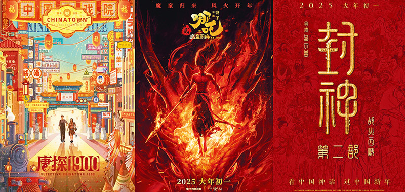 2025年春节档,中国电影市场强势开年。据统计,春节档电影票房达95.1亿元,观影人次达1.87亿,刷新中国影史春节档最高票房和人次纪录。图为2025年春节档电影海报拼图。中央广播电视总台供图