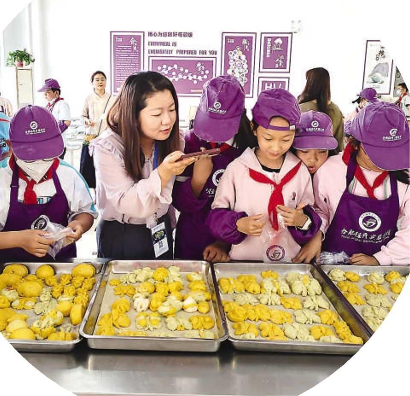 合肥经开实验学校美术教师带领学生在烘焙教室上美术、劳动融合展示课。(资料图片)