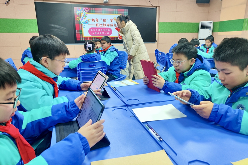 西湖区珠市学校云飞路校区策划了一场以“‘AI’时代下,人工智能开启学习新探索”为主题的“开学第一课”。老师携手数字人助手——“豆包”老师,与同学们互动学习元宵节的文化底蕴和风俗习惯。