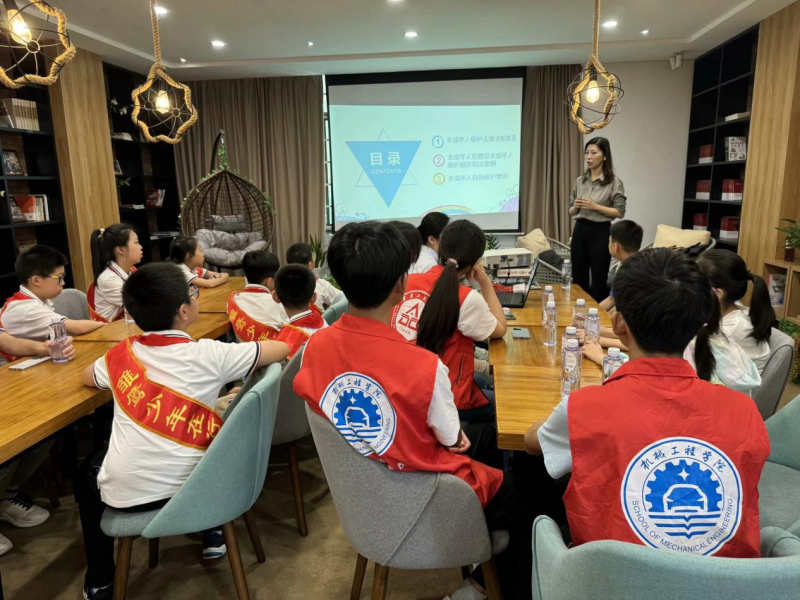 “五彩课堂”以多样化的活动形式,将文明理念融入青少年的课后生活实践中。在“蓝色”防护课堂中围绕青少年健康成长,邀请派出所民警为青少年们开展普法宣传、禁毒知识、防盗防骗等安全知识普及活动,如“守护成长”未成年人普法讲座、“以法护航 共护成长”法律知识讲座等。
