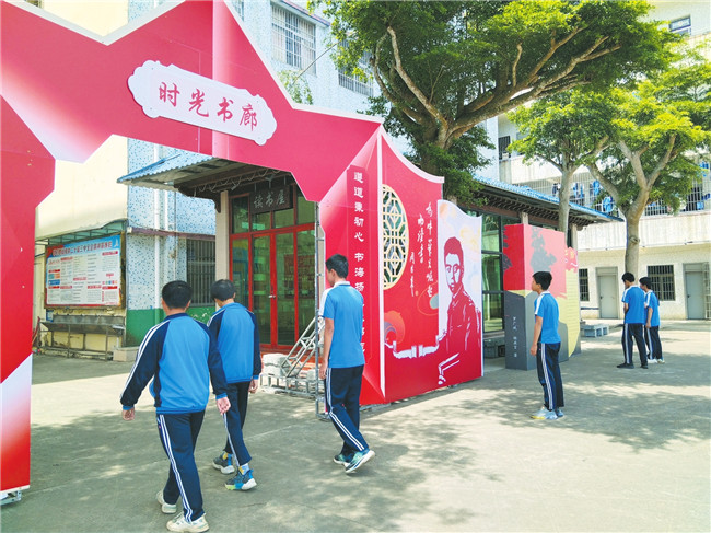 海口市遵谭中学“时光书廊”成为一道靓丽的校园风景线。遵谭中学供图