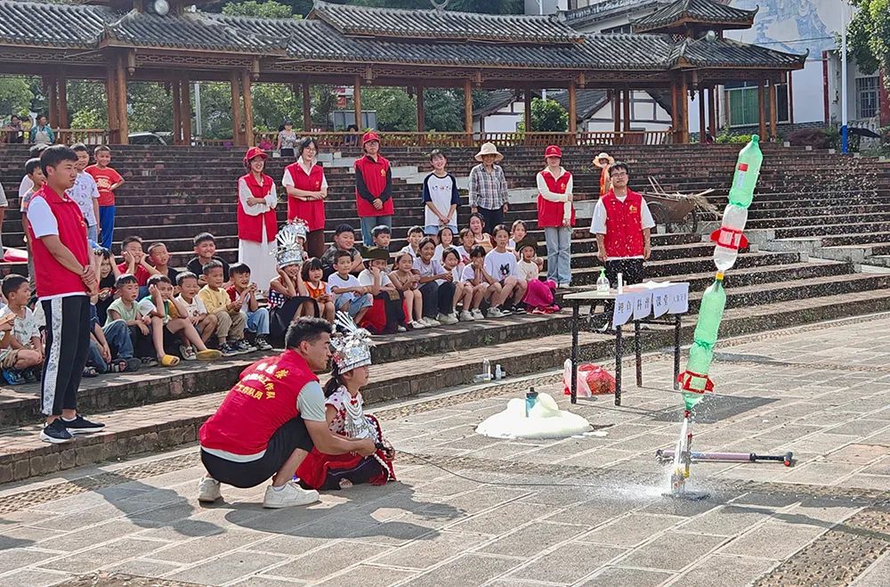 “3、2、1——发射!”随着指令响起,由孩子们亲手制作的水火箭腾空而起,欢呼声此起彼伏。这是兴仁市鲤鱼村“大手牵小手”暑期文明实践服务活动精彩瞬间。