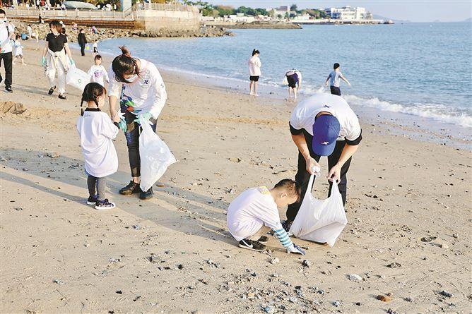 厦门马拉松蓝色公益发起“降塑不降速”公益亲子净滩活动,守护美丽海岸线。