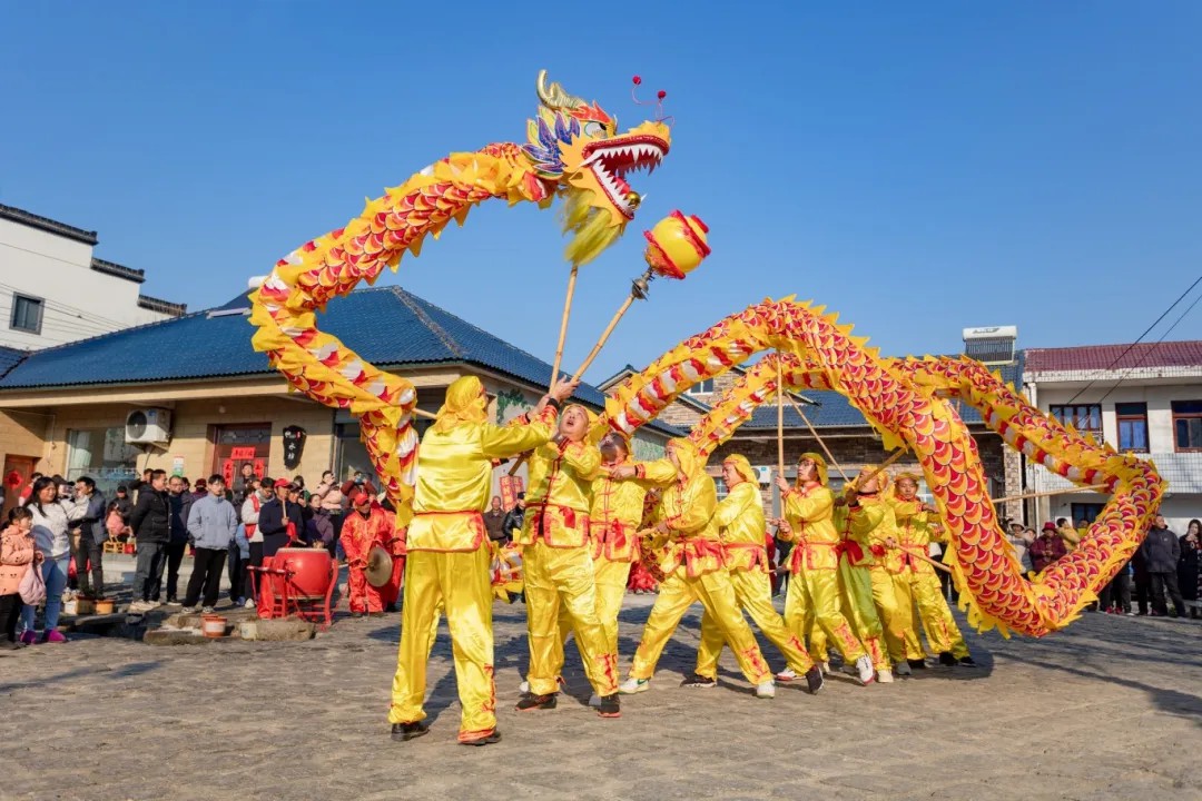 安徽省宣城市广德市杨滩镇燎琳村举办了“我们的节日·欢乐中国年”——品味皖东南·梧溪过大年百家宴新时代文明实践活动,舞龙舞狮、打糍粑、磨豆腐……各种传统民俗活动轮番上演,引导群众在浓浓的年味和文化习俗中,感悟节日的文化内涵,厚植家国情怀。