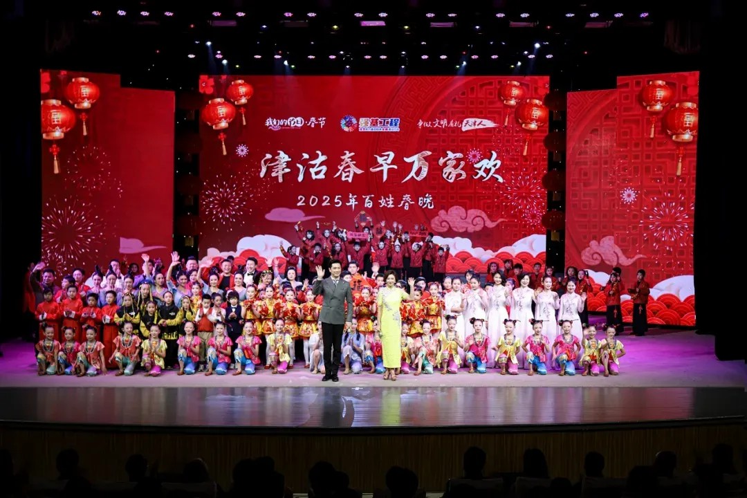 天津市“津沽春早万家欢”2025年百姓春晚在西青区新时代文明实践中心精彩上演。作为天津市“我们的节日·春节”主题示范活动,百姓春晚融合多种艺术形式,深度挖掘中华优秀传统文化和津派文化,全力营造喜庆祥和的节日氛围。