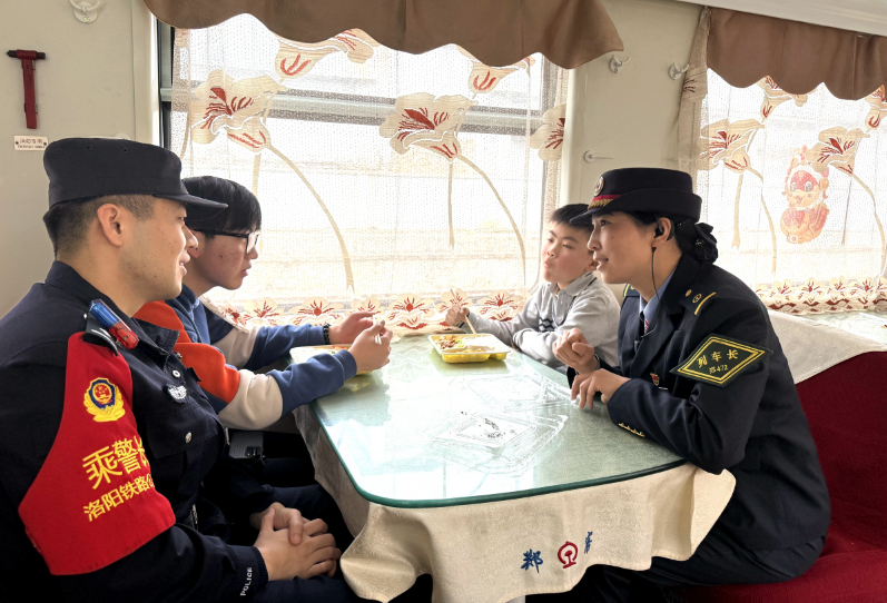 在K755次列车上,工作人员沿途照顾无人陪伴的儿童。