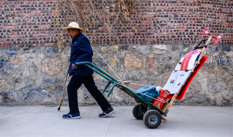云南弥渡县的李存德爷爷,年过七旬,右眼失明,需要拐杖辅助行走。但这丝毫不影响他拉着自制的小推车书摊,每天准时出现在集市入口。这个小书摊,四年累计服务阅读近1.5万人次。