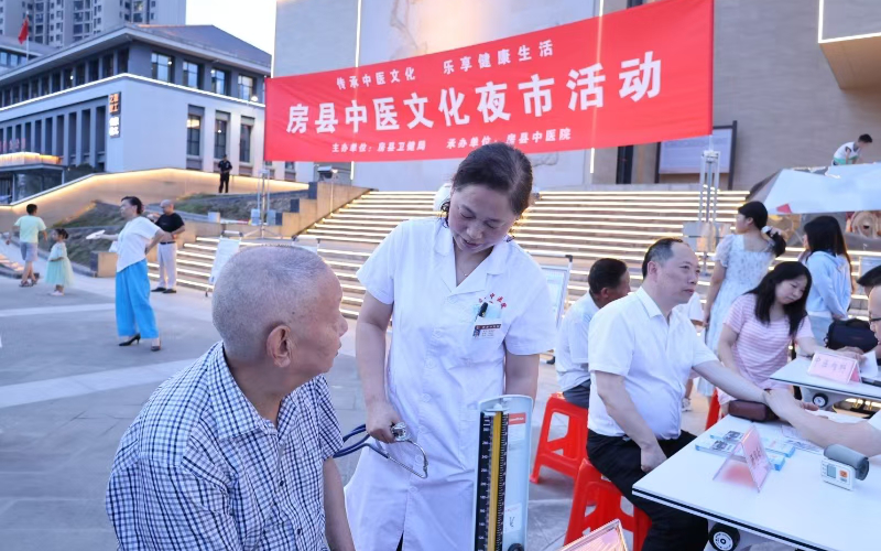 市民在“中医药文化夜市”测量血压。图片来源:房县县委宣传部