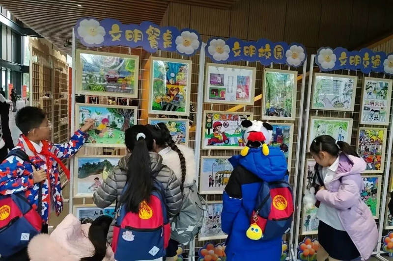 这份对崇高理想的追寻,在同期举办的“童心绘文明”主题画展中呈现:孩子们以画笔为媒,将心中的文明图景、对未来的星辰大海跃然纸上。一幅幅充满童真与想象力的画作,不仅是艺术才能的展示,更是其道德认知、情感认同与理想抱负最真实、最生动的表达。