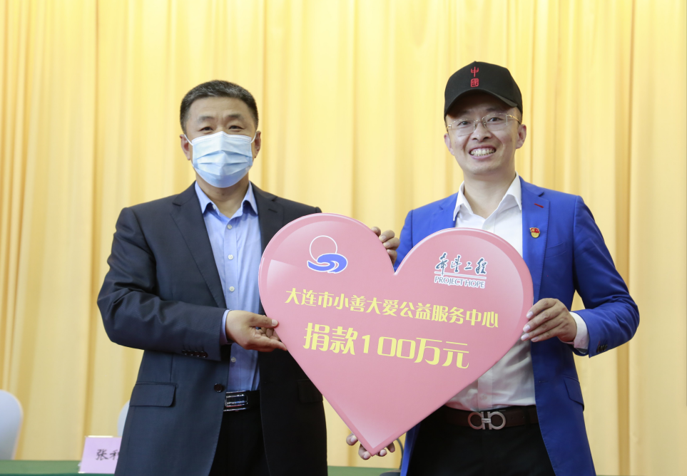 王官升带领团队向希望工程捐款100万。(图片来源:王官升)