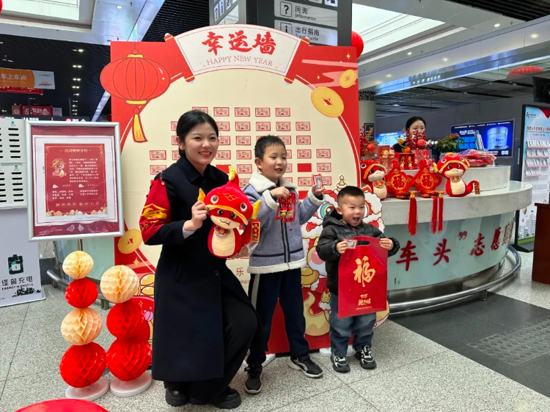 合肥站组织开展游戏活动,旅客参与互动获得玩偶、春联等礼品。