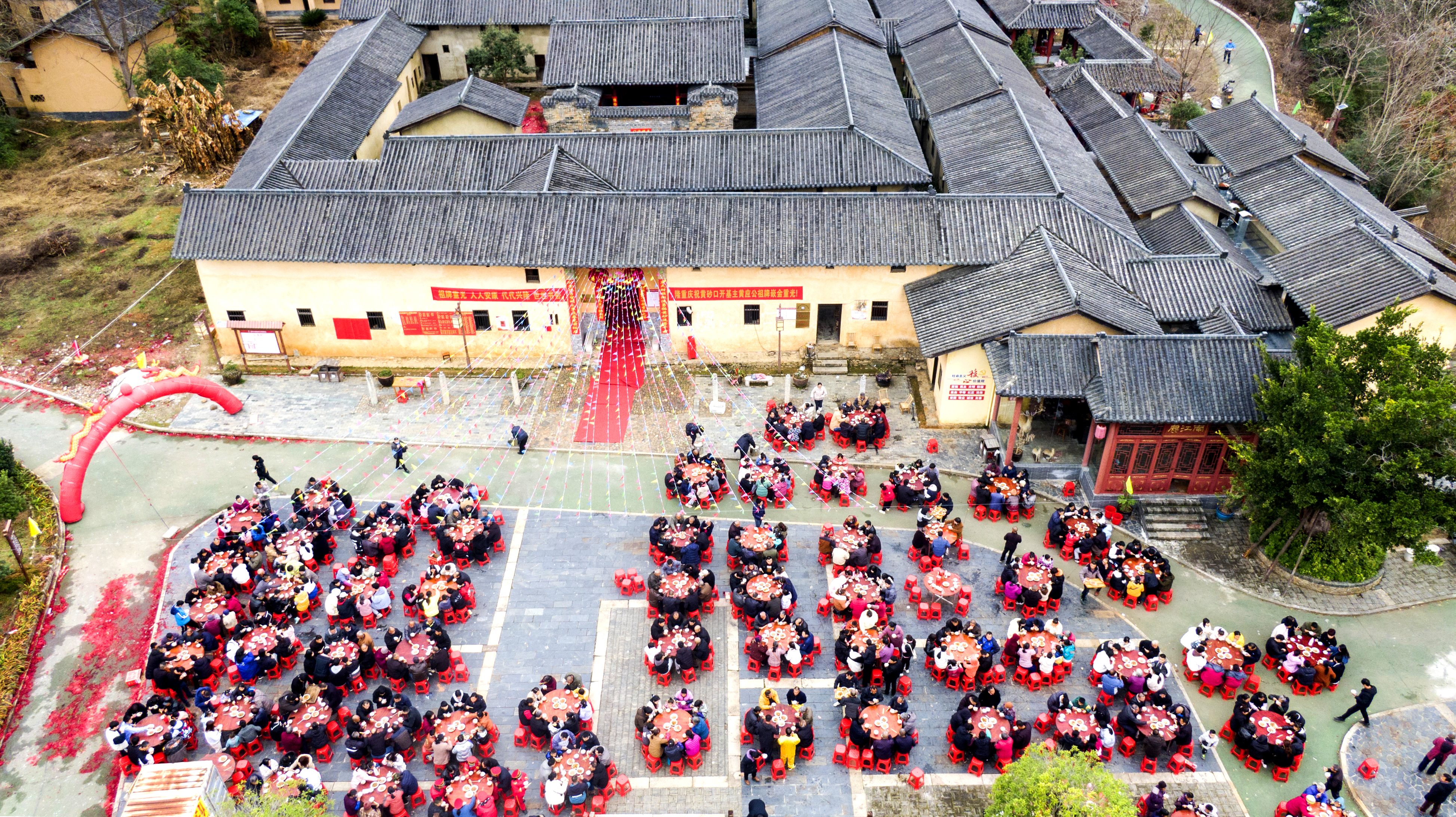 黄砂口村文友广场举办百家宴,其乐融融过佳节。