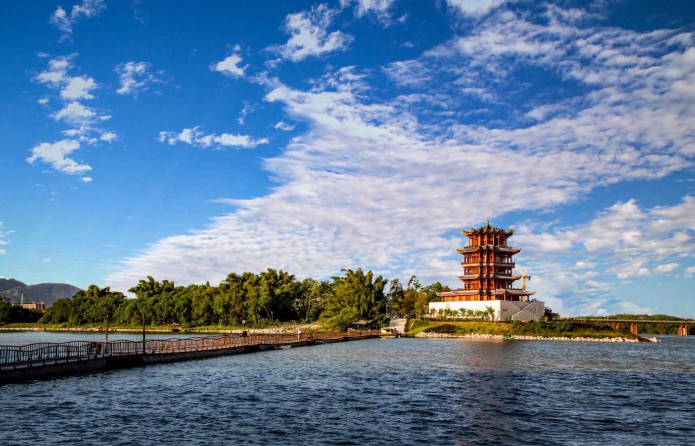 四面环水,绿竹成荫