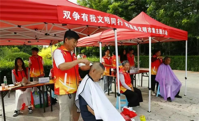宣化区崞村镇楼房子村的敬老互助食堂内,志愿者正为老人理发、义诊。全市已建成9家此类食堂,并整合心理疏导、法律援助等服务,打造“15分钟便民服务圈”。新时代文明实践中心(所、站)覆盖全市19个中心、239个所、4358个站,常态化开展生活帮办、亲情陪伴等志愿服务,年惠及群众超百万人次。
