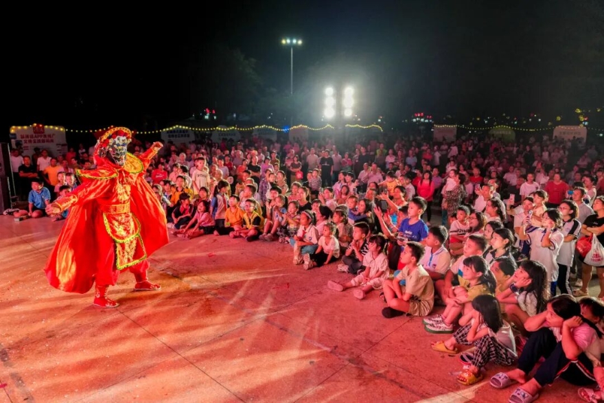 清远市举办“文明夜市”,民间艺术团队带来的京剧变脸表演吸引众多群众观看。通讯员供图