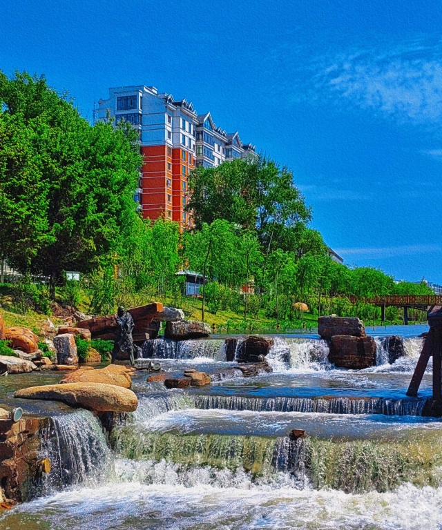 铁力市在清淤截污、修复河道生态的同时,沿河打造了叠水坝、竹简景墙、狩猎塑像等景观,生动再现了铁力早期狩猎社会的生活场景。铁甲河带状公园、滨河公园、儿童公园等9座公园,更是组成了“一带九园十四景”,为铁力市增添了一处感受城市文化的好去处。