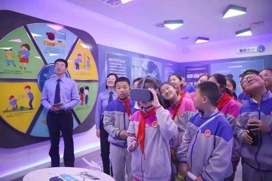 同学们在南阳市检察院青少年法治关爱中心“冬云工作室”互动体验。