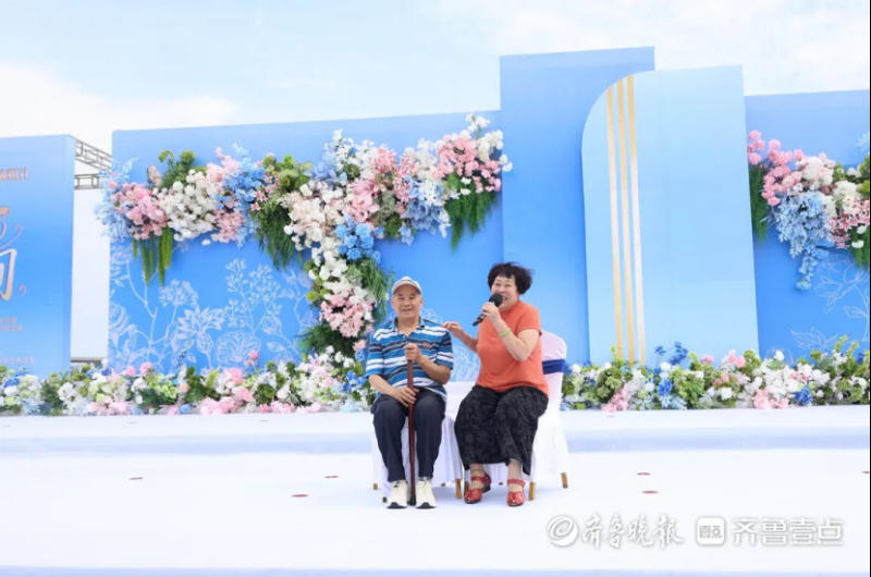 在婚俗新风倡导环节,烟台市民政局、芝罘区委宣传部相关领导为烟台市首个移风易俗户外颁证点揭牌,通过将婚姻登记与集体婚礼相结合,让新人在体验简约浪漫的同时,深刻感受文明婚俗的新风尚。随后,烟台市婚俗联盟单位代表上台签约并宣读移风易俗承诺书。金婚代表姜淑爱、翟明申夫妻上台,向大家分享了他们跨越岁月的婚姻智慧与家风故事。