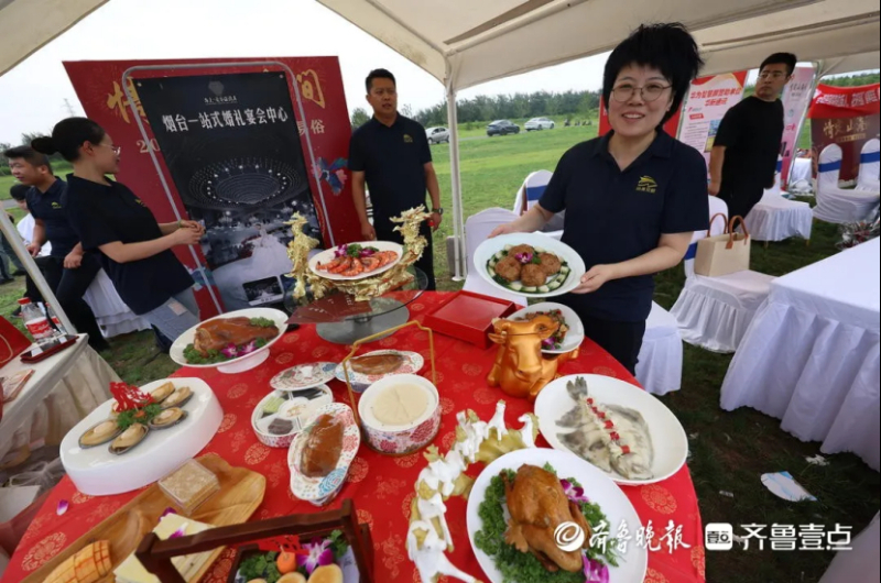 在婚俗新风倡导区,烟台尚美·爱琴海酒店展示特色喜宴,传递文明婚俗新风尚。