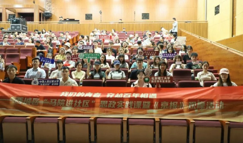 2025年6月,西城区委宣传部组织结对高校青年宣讲员开展“马院进社区”思政实践课暨《京报》话剧观摩活动,通过沉浸式文艺体验强化青年宣讲员对初心使命的理解,提升青年宣讲员的思想深度和情感认同。