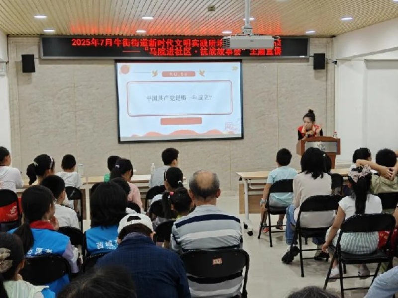 2025年7月,北京交通大学马克思主义学院宣讲团与牛街街道新时代文明实践所联合举办“马院进社区·抗战故事会”,采用“理论+故事+互动”模式,弘扬伟大抗战精神。