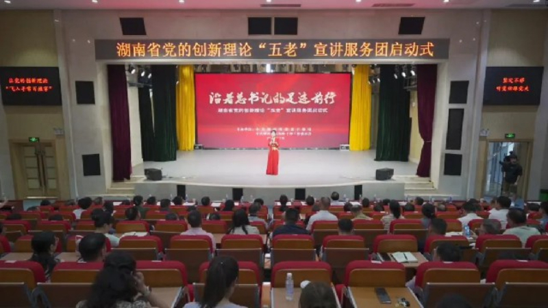 “党的创新理论‘五老’宣讲服务团”由老干部、老战士、老专家、老教师、老模范组成。他们深入社区、乡村、校园,结合自身经历与湖南实践,用乡音土语讲述“守护好一江碧水”“半条被子的温暖”等党的理论、党史故事,受到广泛欢迎,发挥了理论宣讲品牌效应。