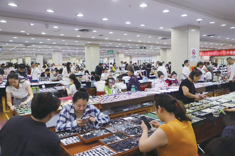 下游市场的拓展也蹄疾步稳。目前,镇平玉器已形成“线下15个大型专业市场+4万余个门店摊位,线上2万余家网店”的立体销售网络。今年玉雕文化节期间,镇平县将与来自世界不同国家和地区的客商洽谈,让镇平玉走向更广阔的市场。