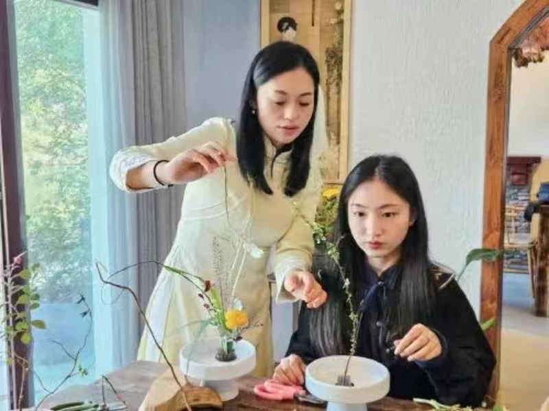 在素心村,蜡梅不仅是经济作物,也是文化载体。在邓纪会的发起下,村里办起了花艺培训班,她常对村民说:“插花蕴含着许多哲理,讲究平衡,左边重了,右边轻了,容易失衡,而生活也需要平衡;插花还讲究距离,远近高低错落有致,就像人与人的关系,距离合适就舒服。”在蜡梅与花艺的熏陶下,村民们的精神世界也愈发丰盈。
