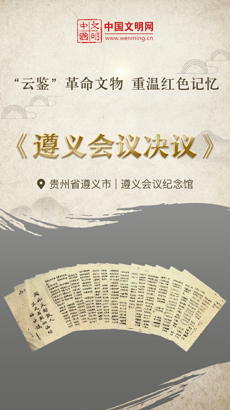 革命文物,承载党和人民英勇奋斗的光荣历史,是弘扬革命传统和革命文化、加强社会主义精神文明建设、激发爱国热情、振奋民族精神的生动教材。中国文明网“文明之声·云鉴馆藏”专栏邀您走进各地革命博物馆、纪念馆、党史馆等红色主题场馆,一起“打卡”红色地标,“云鉴”红色馆藏,汲取奋进力量。为纪念遵义会议召开90周年,今天为您介绍遵义会议纪念的馆藏文物——《遵义会议决议》。