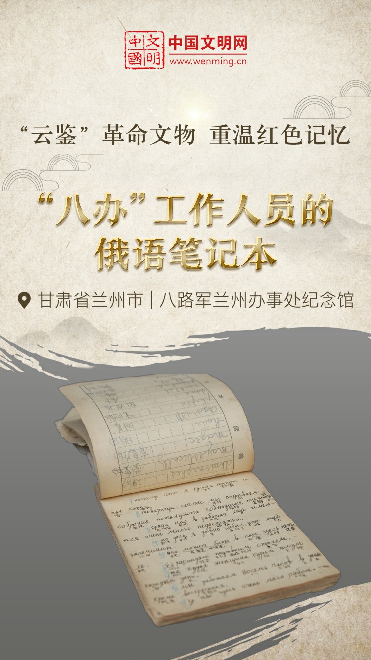 革命文物,承载党和人民英勇奋斗的光荣历史,是弘扬革命传统和革命文化、加强社会主义精神文明建设、激发爱国热情、振奋民族精神的生动教材。中国文明网“文明之声·云鉴馆藏”专栏邀您走进各地革命博物馆、纪念馆、党史馆等红色主题场馆,一起“打卡”红色地标,“云鉴”红色馆藏,汲取奋进力量。今天为您介绍八路军兰州办事处纪念馆的馆藏文物——“八办”工作人员使用过的俄语笔记本。