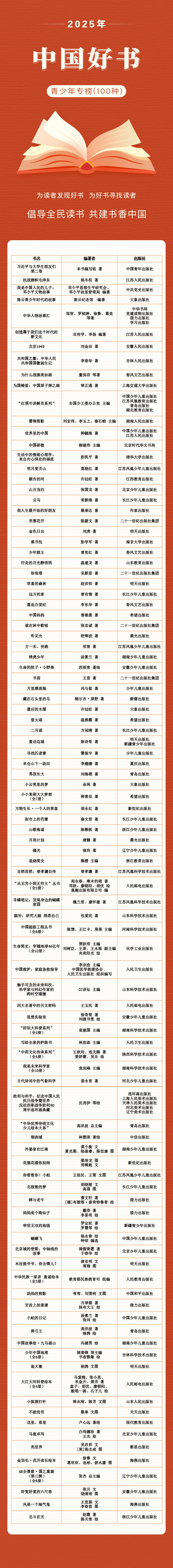 100种图书入选2025年“中国好书”青少年专榜-中国文明网