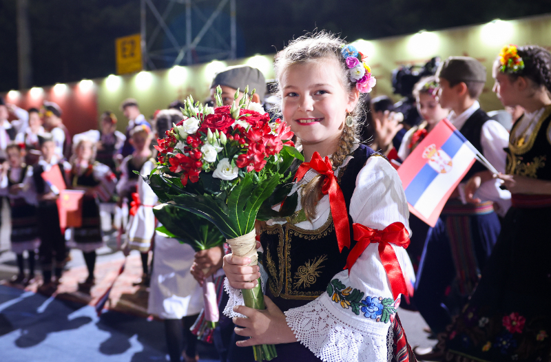 武契奇在机场为习近平举行独具特色的迎宾仪式。塞尔维亚少年儿童向习近平和彭丽媛献花,挥舞中塞两国国旗,身着民族盛装的塞尔维亚民众载歌载舞热烈欢迎。