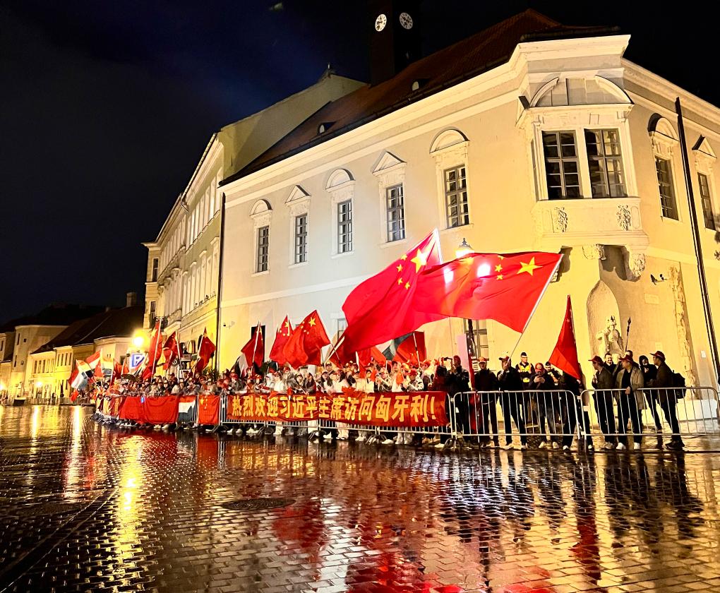 习近平乘车从机场赴下榻饭店途中,数百名当地华人华侨和中国留学生聚集在道路两旁,挥舞中匈两国国旗,举着横幅,热烈欢迎习近平主席到访。(记者:谢环驰 张帆 赵丁喆 张远 马峥)