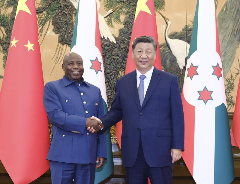 9月6日上午,国家主席习近平在北京人民大会堂会见来华出席中非合作论坛北京峰会的布隆迪总统恩达伊施米耶。新华社记者 丁林 摄