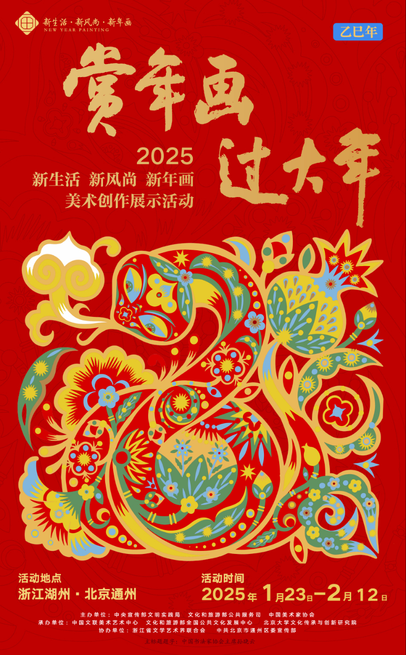 本次活动由中央宣传部文明实践局、文化和旅游部公共服务司、中国美术家协会主办,中国文联美术艺术中心、文化和旅游部全国公共文化发展中心、北京大学文化传承与创新研究院承办,浙江省文学艺术界联合会、中共北京市通州区委宣传部协办。展览以习近平新时代中国特色社会主义思想为指导,深入学习贯彻习近平文化思想,围绕在新的起点上继续推动文化繁荣、建设文化强国、建设中华民族现代文明这一新的文化使命,培育和践行社会主义核心价值观,丰富人民群众节日精神文化生活,激励广大群众振奋精气神、共创新生活。