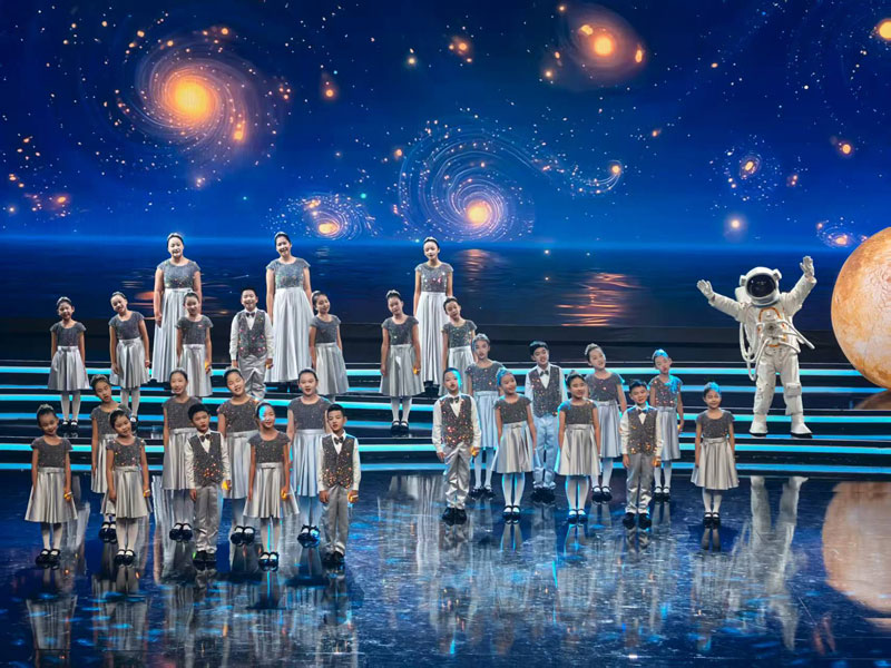 黑龙江省哈尔滨市少年宫小雪花合唱团演唱歌曲《仰望星空》。路弘 摄