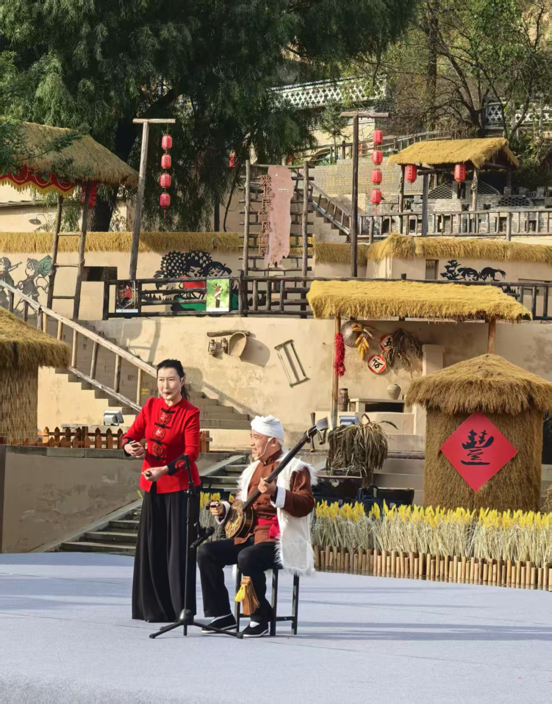 乡村文艺志愿者通过乡土文艺表演进行理论传播。路弘 摄