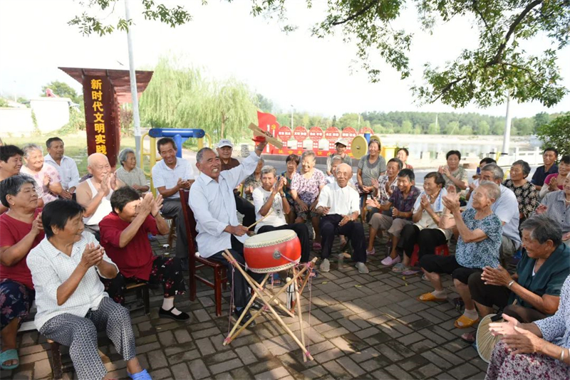 “人多人少一个样、环境好坏一个样、有酬无酬一个样”,刘学文经常参加公益演出,用自己独特的方式坚持着大鼓“曲艺梦”。“独乐乐不如众乐乐,各位父老乡亲喜欢听书,给我捧场,我心里乐呵。”不论是鸦窝村的村民还是慕名邀请刘学文去演出的邻村听友,无论是农忙农闲,还是夏夜冬天,只要有村民想听,刘学文都带着大鼓去说唱,渐渐形成了村民们“点餐下单”、刘学文“送货上门”的文明实践活动品牌。