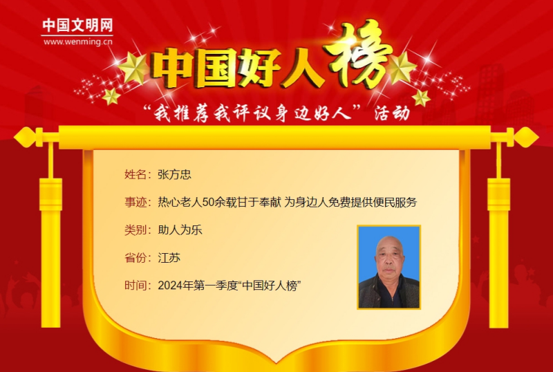 “那是我们的‘张万能’!”聊起张方忠,江苏省宿迁市宿城区河滨街道河滨社区的居民都竖起了大拇指。