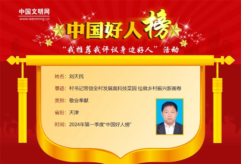 刘天民入选“中国好人榜”